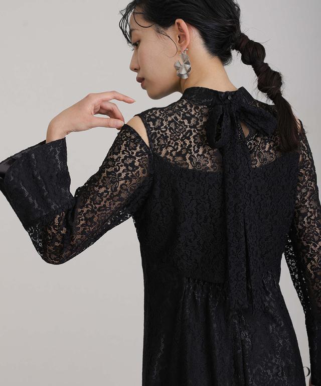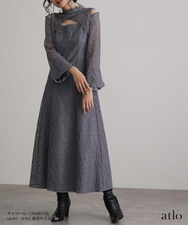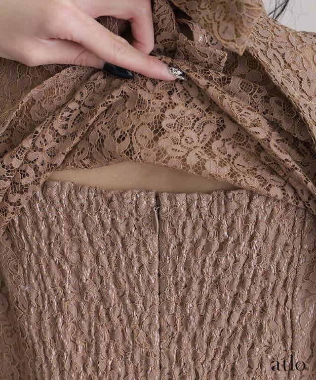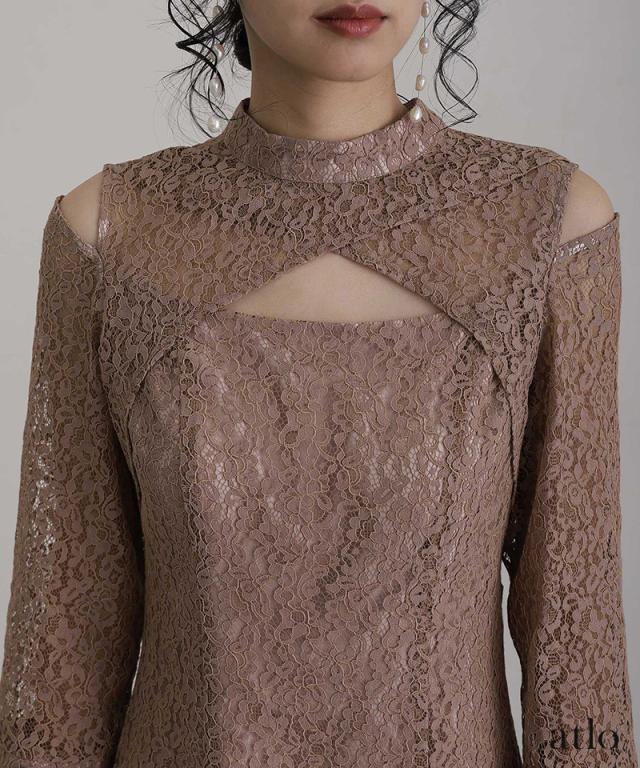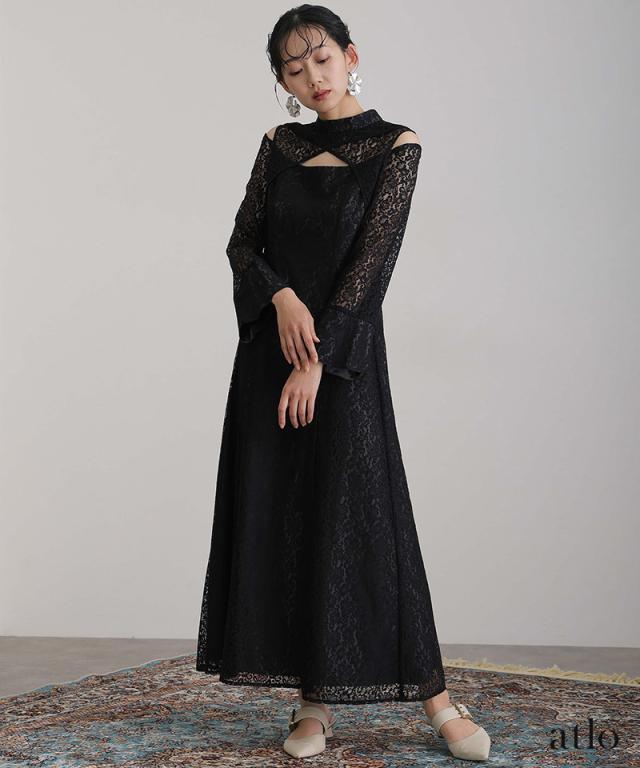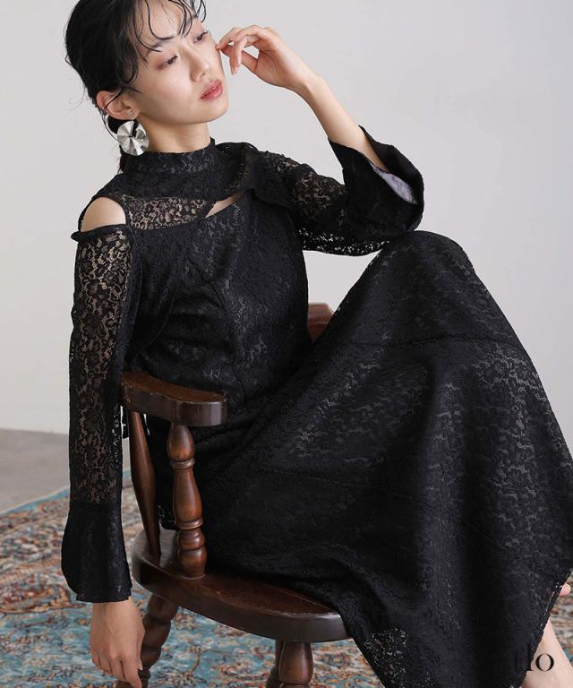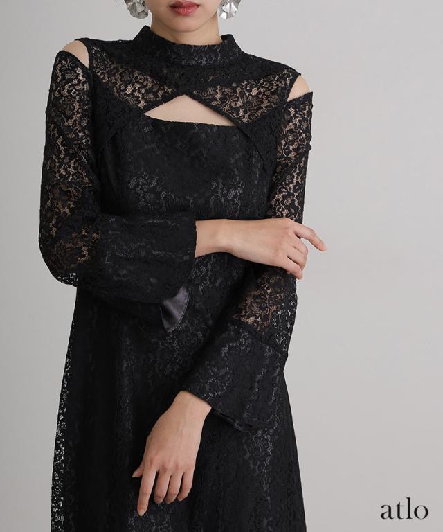 ショルダークロスラインレースドレス【313242222】10代・20代・30代・40代・50代・ドレスワンピ・フォーマルワンピ・パンツドレス・服装・ワンピース・ドレスカジュアル・ブランド・七分袖・長袖・ロング・膝丈・薄手・厚手・無地・刺繍・脚長効果・伸縮性・キレイめ・着やせ・体型カバー・スタイルアップ・レース・リボン・ドレープ・小さいサイズ・3Lや4L・かっこいい・かわいい・即日発送・送料無料・結婚式・婚活・披露宴・顔合わせ・発表会・演奏会・二次会・同窓会・お呼ばれ・食事会・謝恩会・親族・七五三・お宮参り・冠婚葬祭・弔事・女子会・韓国・デート・入学式・卒業式・入園式・卒園式・ママ・ピアノ・マタニティー・セレモニー・セレブ・パーティー