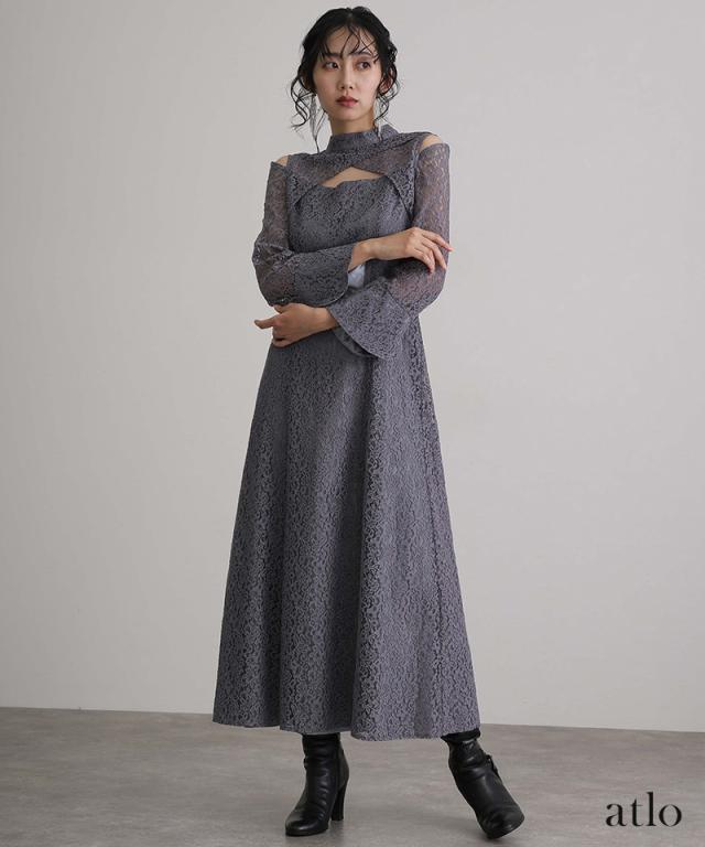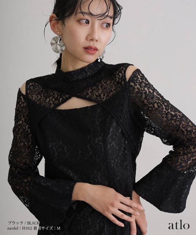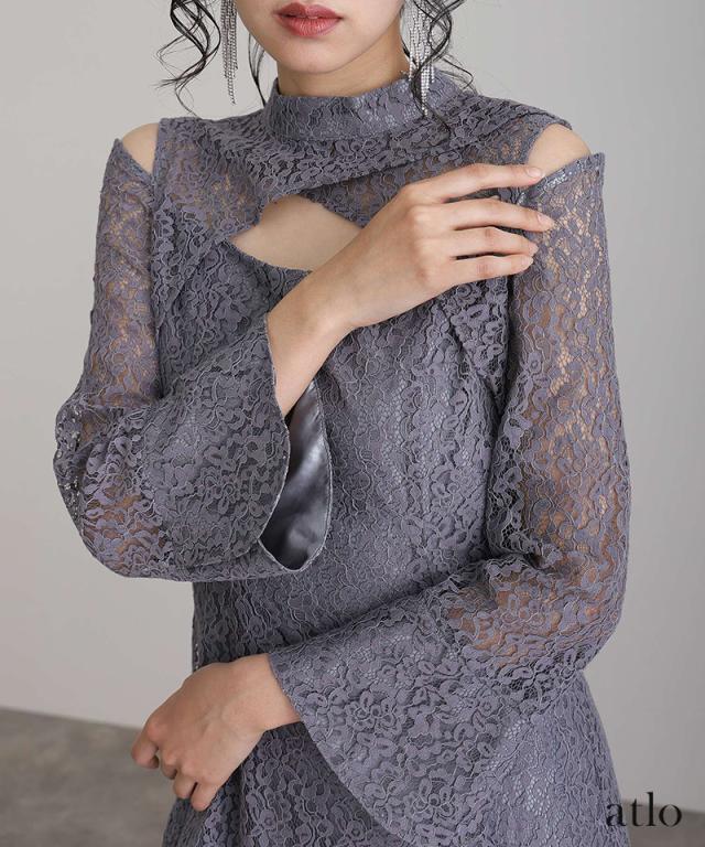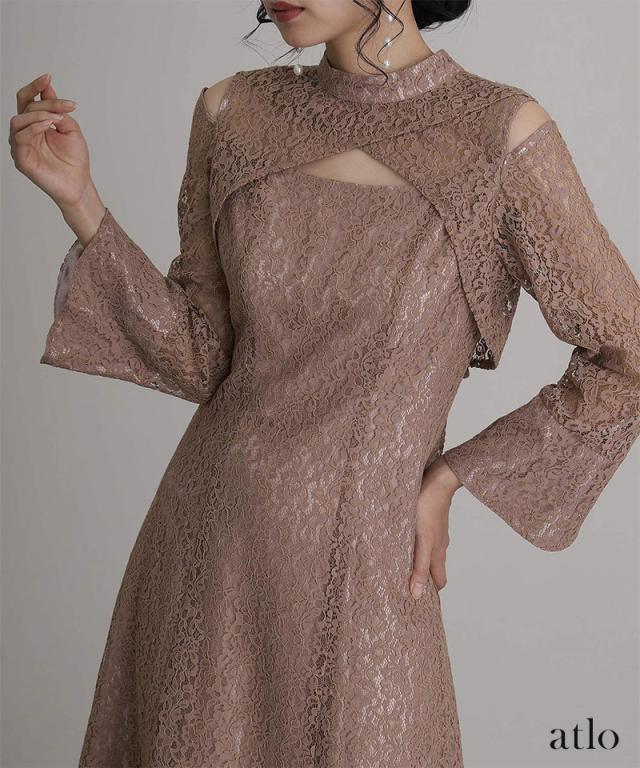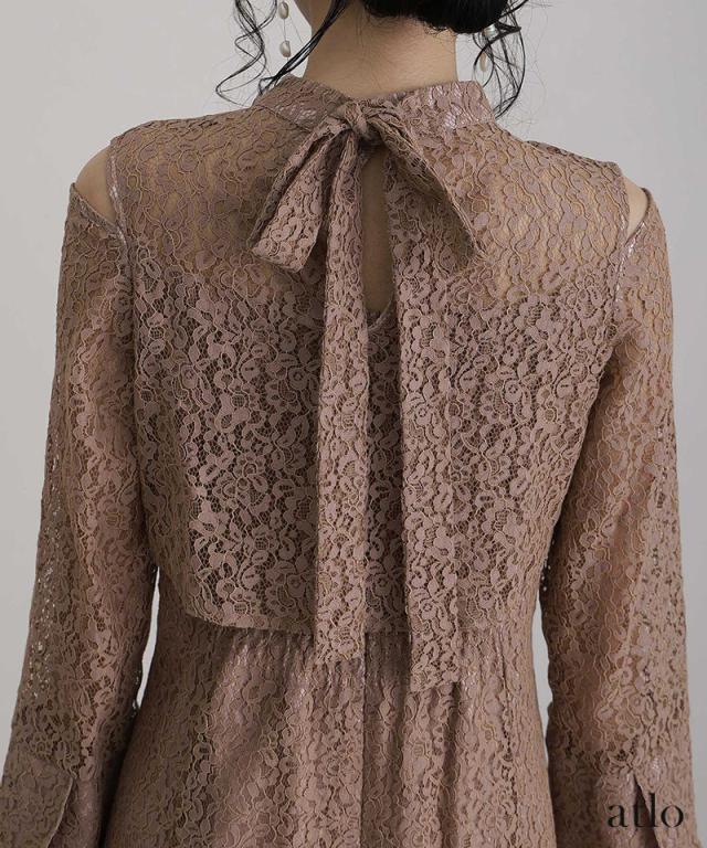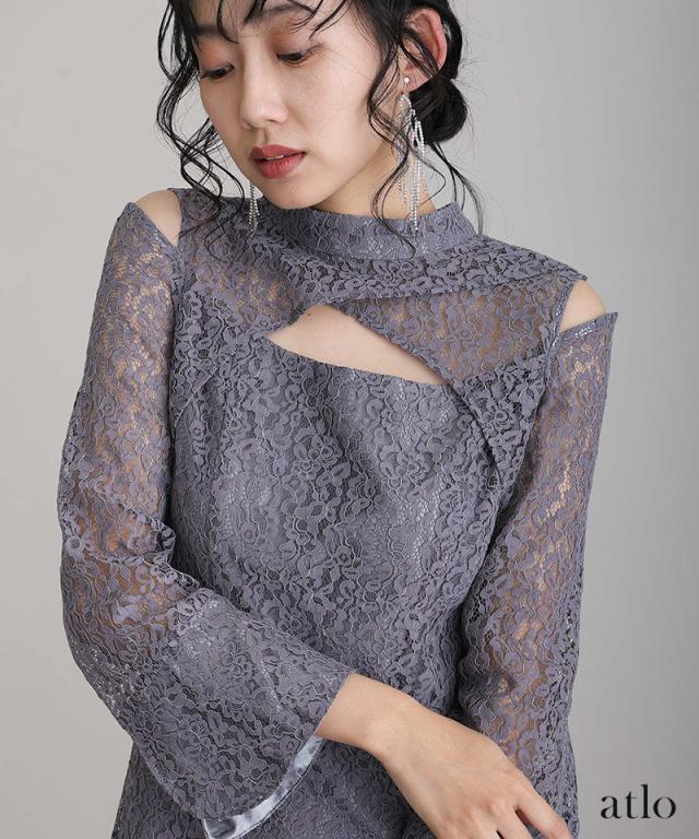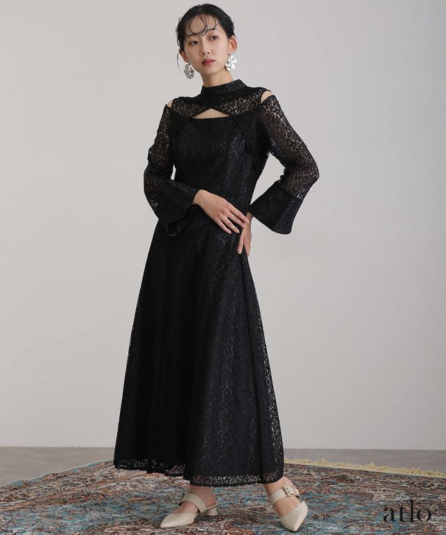 ショルダークロスラインレースドレス【313242222】10代・20代・30代・40代・50代・ドレスワンピ・フォーマルワンピ・パンツドレス・服装・ワンピース・ドレスカジュアル・ブランド・七分袖・長袖・ロング・膝丈・薄手・厚手・無地・刺繍・脚長効果・伸縮性・キレイめ・着やせ・体型カバー・スタイルアップ・レース・リボン・ドレープ・小さいサイズ・3Lや4L・かっこいい・かわいい・即日発送・送料無料・結婚式・婚活・披露宴・顔合わせ・発表会・演奏会・二次会・同窓会・お呼ばれ・食事会・謝恩会・親族・七五三・お宮参り・冠婚葬祭・弔事・女子会・韓国・デート・入学式・卒業式・入園式・卒園式・ママ・ピアノ・マタニティー・セレモニー・セレブ・パーティー