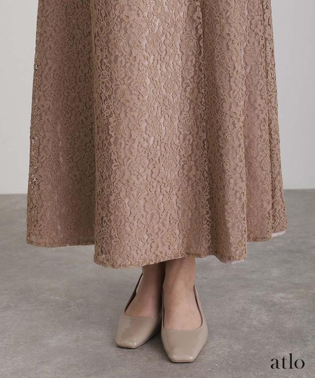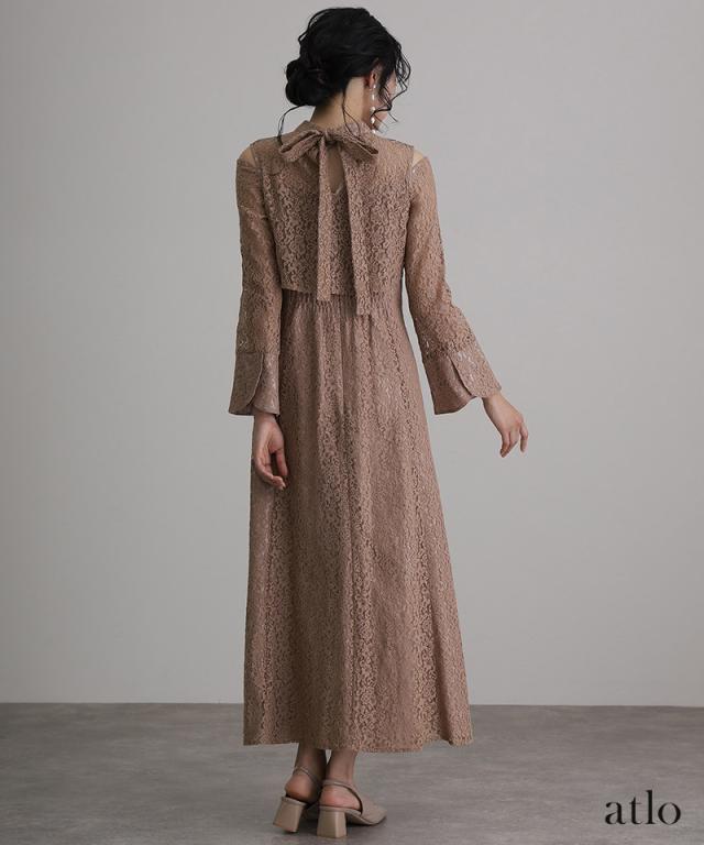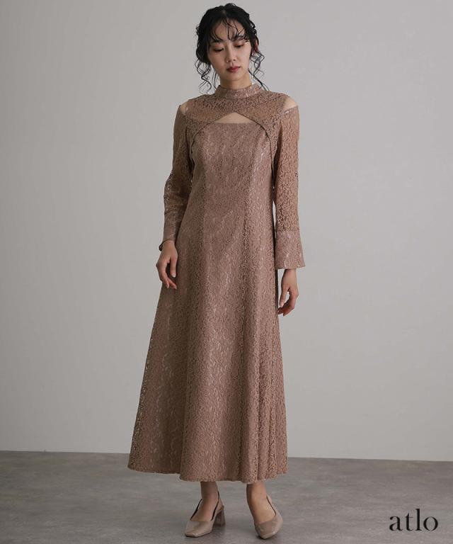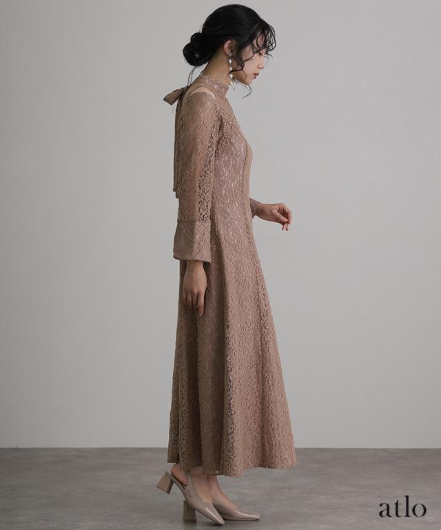 レースの立体感とドレスの程よいフィット感が女性らしさを引き立てます。