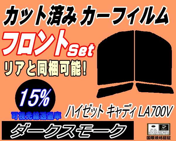 フロント (b) ハイゼット キャディ LA700V (15%) カット済みカーフィルム 運転席 助手席 三角窓 左右セット スモークフィルム フロントドア 車種別 スモーク 車種専用 成形 フイルム 日よけ 窓 ガラス ウインドウ 紫外線 UVカット LA700V LA710V ダイハツ