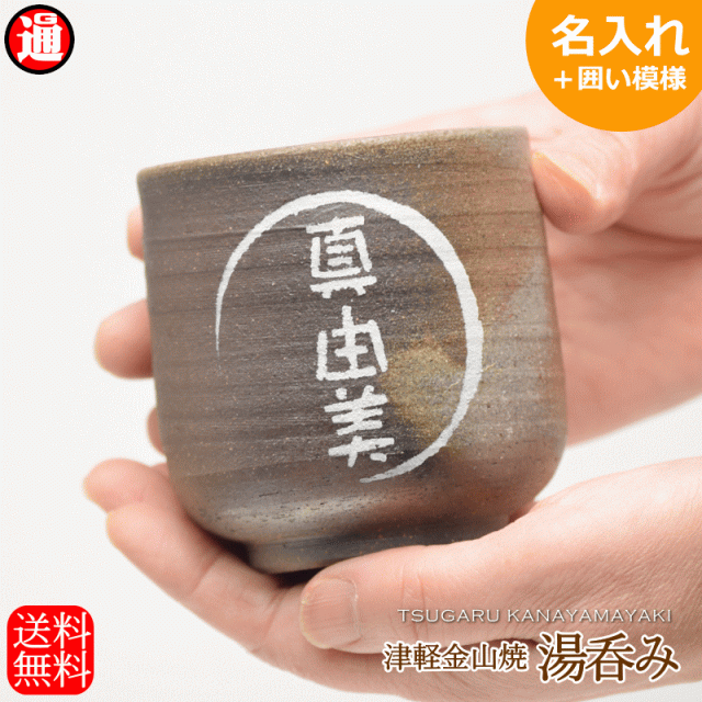 名入れ 湯呑み 陶器 【囲い模様】津軽金山焼 送料無料(ギフト箱・バック 無料中) 湯のみ 湯呑 陶器 お歳暮 御中元 退職祝い 古希 お祝い 男性 プレゼント 敬老の日 ギフト 父の日 母の日湯飲み 敬老 誕生日 還暦 古希 喜寿 傘寿 米寿 敬老の日