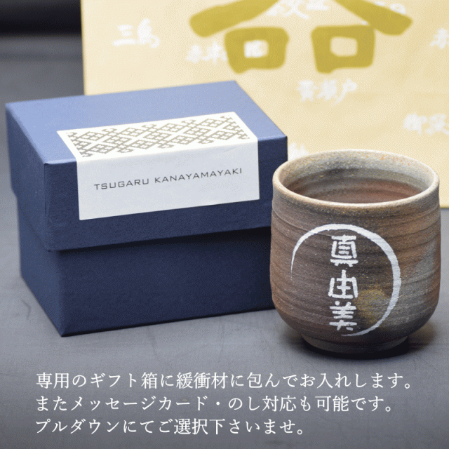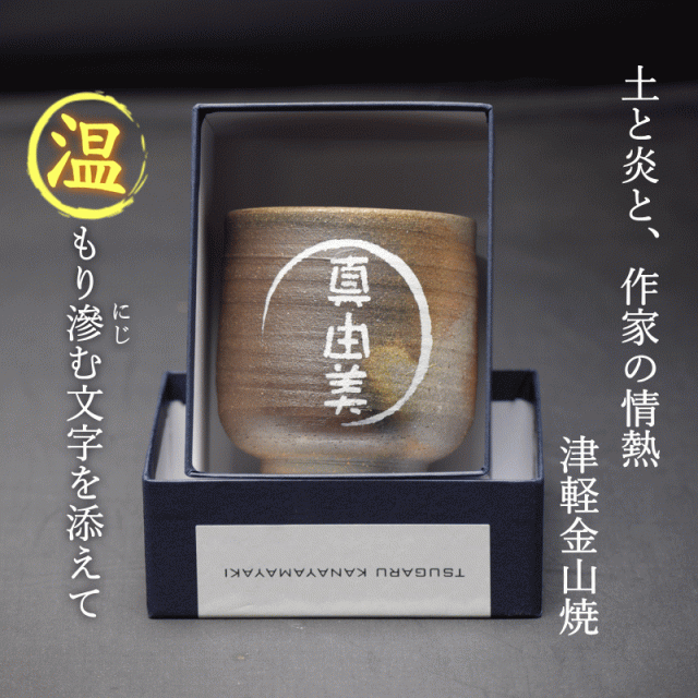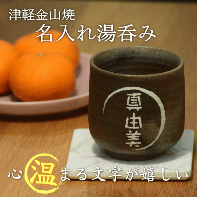 津軽金山焼 焼き締め 名入れ 湯呑み