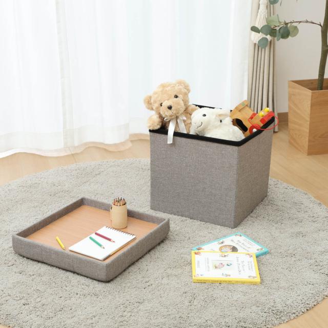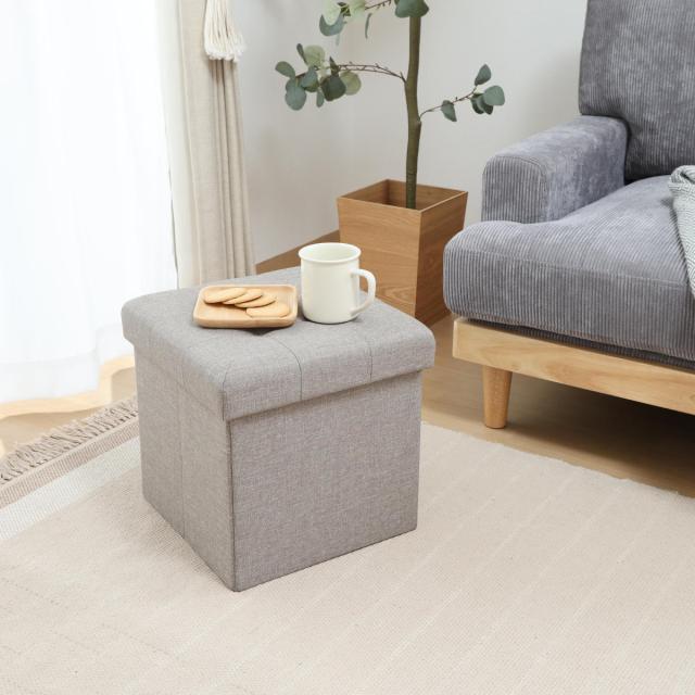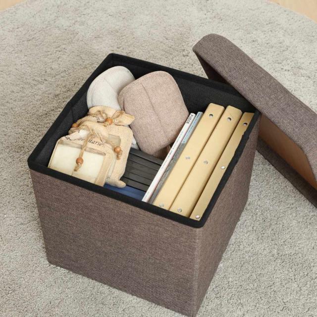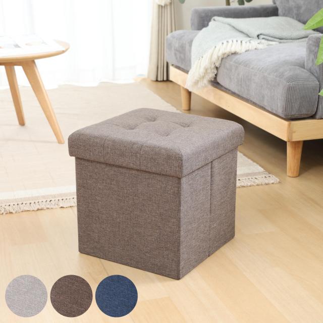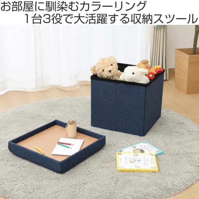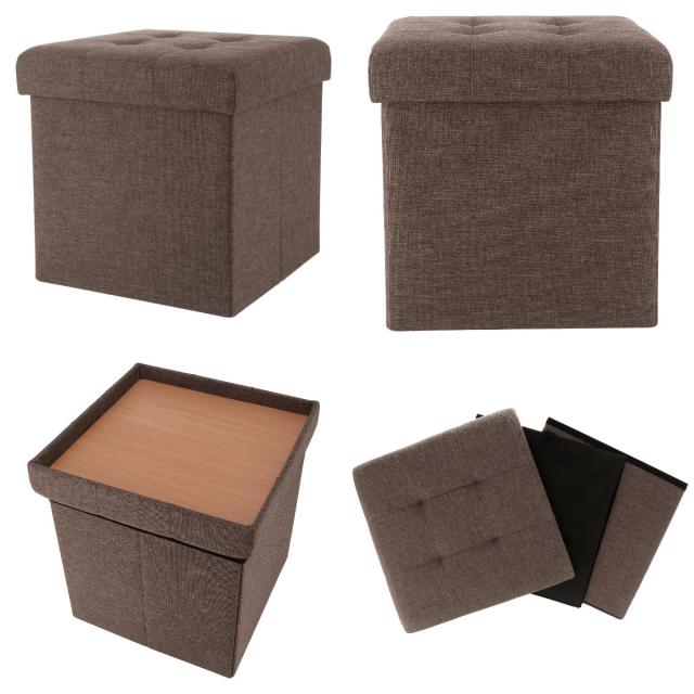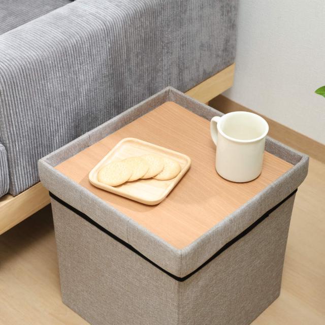 収納スツール 座面正方形タイプ テーブルにもなる収納スツール ( 折りたたみ 座れる 収納 ボックス テーブル サブテーブル ファブリック 布 正方形 スクエア サイドテーブル リビング 玄関 )