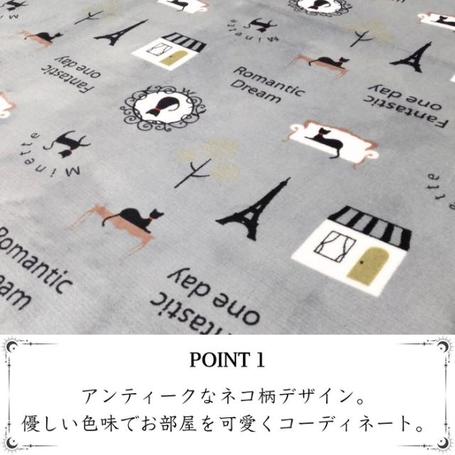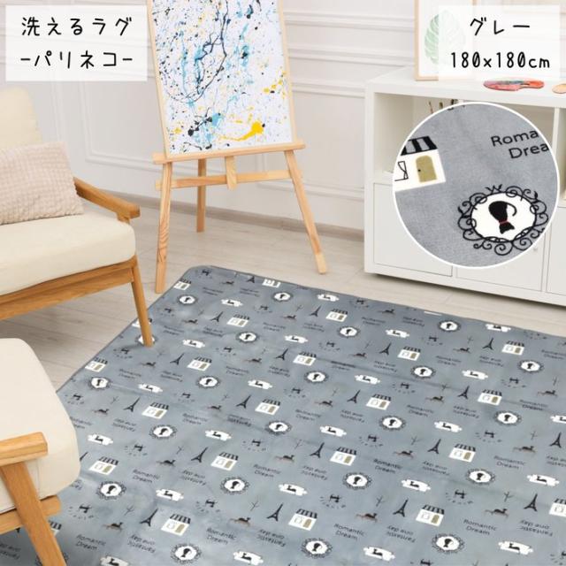 ご家庭で洗えるラグ パリネコ 180x180cm 2畳用 グレー色 ネコ柄 ホットカーペットカバー こたつ敷