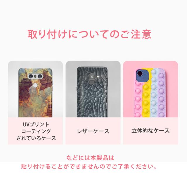 合皮、シリコン、EVA、TPU、POE、繊維、他、難接着樹脂材料などには本製品は貼り付けることができませんのでご了承ください。