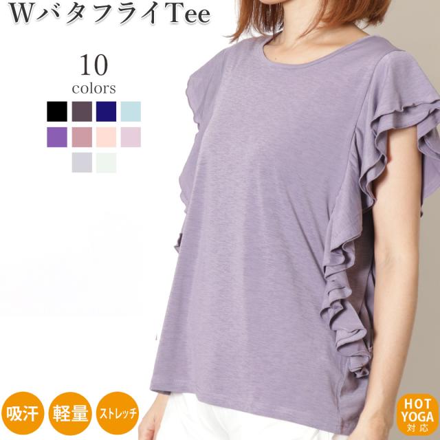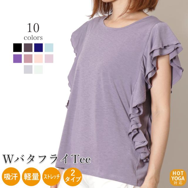 レディース ヨガ ヨガウェア かわいい ホットヨガ ヨガトップス 超軽量 吸汗速乾 フレアスリーブ バタフライスリーブ ヨガウェア お家でヨガ
