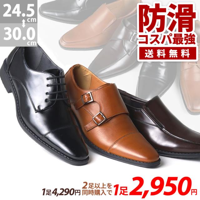 ビジネスシューズ メンズ 軽量 走れる 2足 幅広 3E 革靴 一体成型 スニーカーソール 合皮 24.5-28cm AAA+ No.2770set