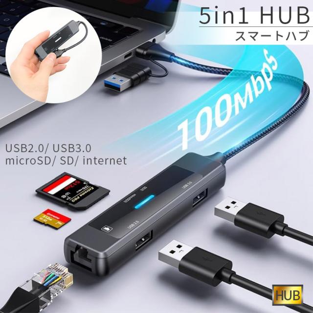 USBハブ カードリーダー USB3.0 5Gbps USB C ハブ USB2.0 480Mbps SD microSD RJ45 100Mbps ネット タイプC 多機能 type-c 変換アダプタ usb-c