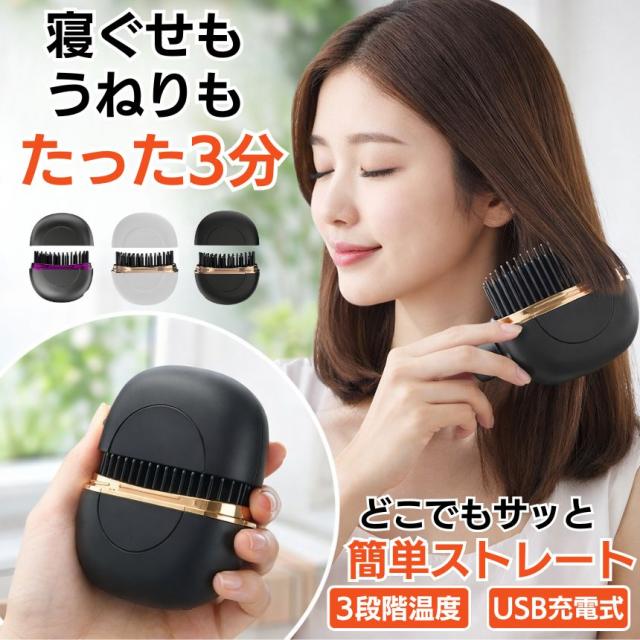 ヘアアイロン ストレート ブラシ ヒートブラシ ミニ アイロン カール ストレートアイロン カールアイロン 電気ブラシ ストレートブラシ くし TYPE-C 充電式 ブラシ型 3段階温度調整 小型 持ち運び 旅行 出張 通学 通勤 ヘアケア