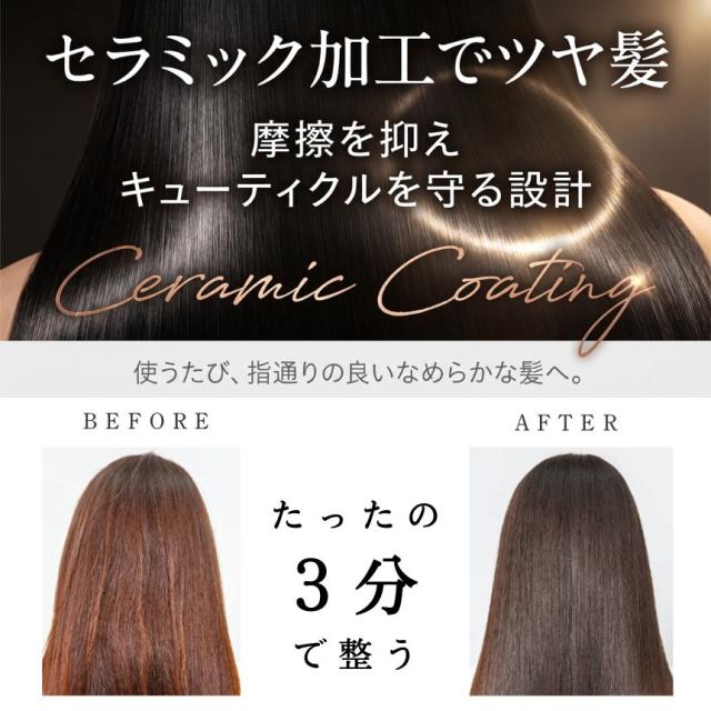 ブラシ部分にはセラミックコーティングを施し、髪の摩擦ダメージを軽減。スムーズにとかせるから、引っかかりにくく、キューティクルを守りながらツヤのあるストレートヘアに仕上がります。