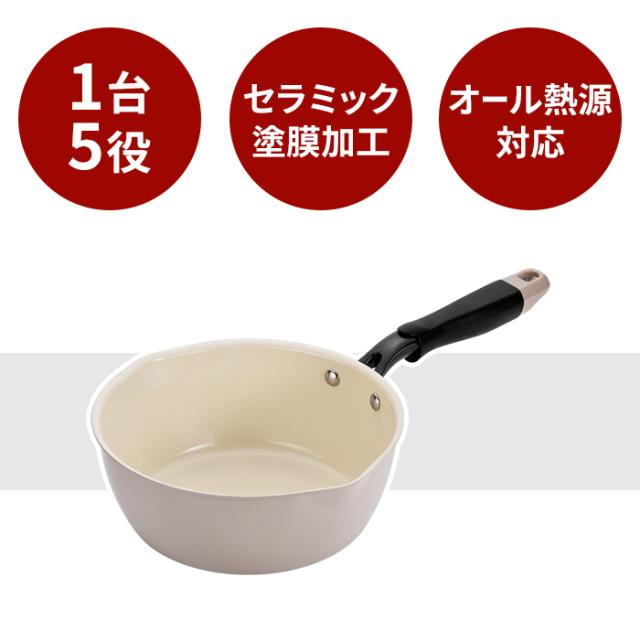 片手鍋 22cm IH対応 ふたなし セラミック塗膜加工 IH ガス火 オール熱源対応 一台5役 調理鍋 深型 マルチパン 汚れにくい 撥水性 調理機器 調理器具 かわいい おしゃれ 新生活 一人暮らし