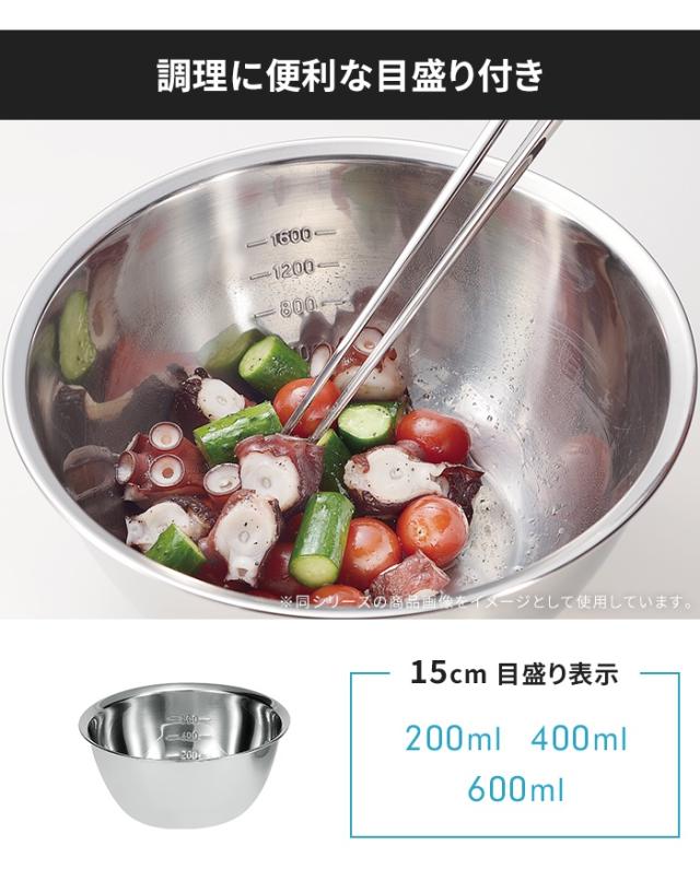 ボウル ステンレス製 15cm 目盛り付き 深型タイプ 下ごしらえ ボール したごしらえ キッチン用品 調理器具 こぼれにくい 混ぜやすい 料理 調理器具 新生活 一人暮らし