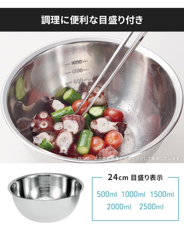 ボウル ステンレス製 24cm 目盛り付き 深型タイプ 下ごしらえ ボール したごしらえ キッチン用品 調理器具 こぼれにくい 混ぜやすい 料理 調理器具 新生活 一人暮らし