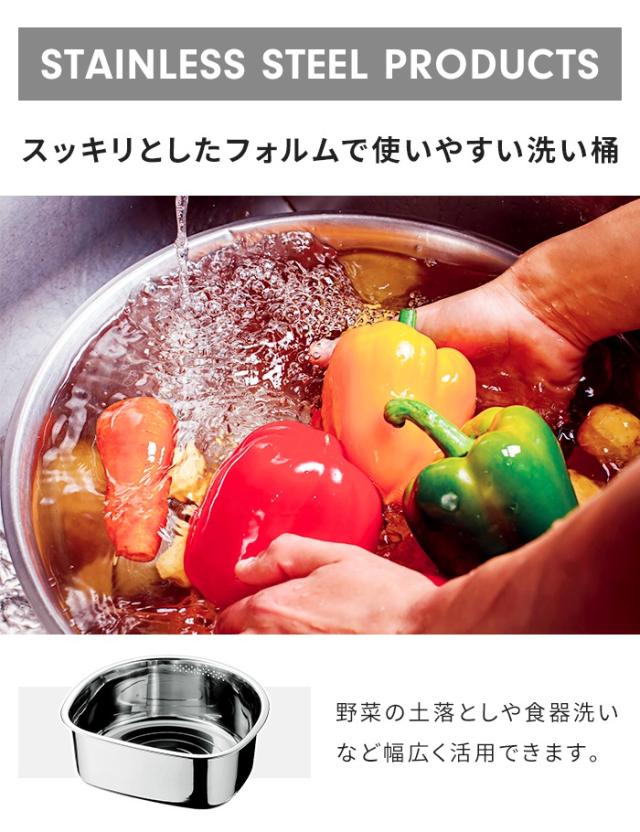 | STAINLESS STEEL PRODUCTS| 扱いが楽で傷つきにくい丈夫な材質のステンレス製品。 スッキリとしたフォルムで使いやすい洗いおけ。 |