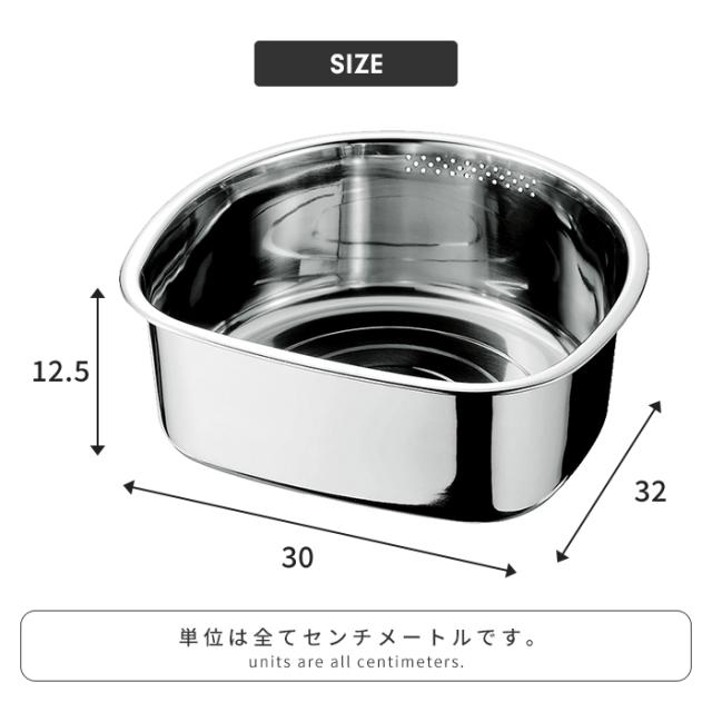 | ・傷つきにくい丈夫な材質のステンレス製 ・流水穴付き ・すべりにくいゴム脚付き |