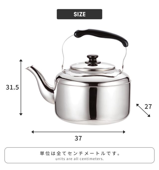| やかん ケトル ステンレス製 9.5L 大容量 ガス火 IH オール熱源対応 広口タイプ 衛生的 錆びにくい お茶作り 大きめ ステンレスケトル ビッグケトル 湯沸しやかん 湯沸しポット 大型ケトル 薬缶 9.5リットル キッチン用品 キッチン雑貨 広口 シンプル 家庭用 業務用 オフィス 施設 |