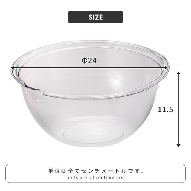 ボウル 透明 プラスチック 24cm 透明容器 軽量 電子レンジ対応 耐熱 食洗機対応 下ごしらえ 中が見やすい キッチン雑貨 新生活 一人暮らし