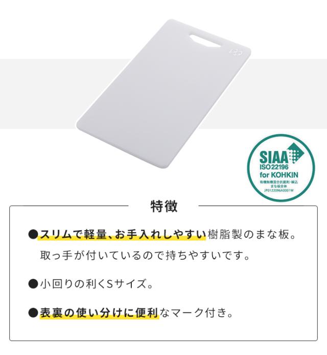 キーワード: カッティングボード 抗菌 まな板 20.5×35cm Sサイズ 四角 両面使用可能 キッチンツール 便利グッズ 軽量 マーク付き 樹脂製まな板 まないた Sタイプ 四角 JIS抗菌適合製品 裏表使用可 スリム キッチン雑貨 調理用品 便利グッズ おしゃれ ナチュラル キッチン 台所 家庭用 業務用