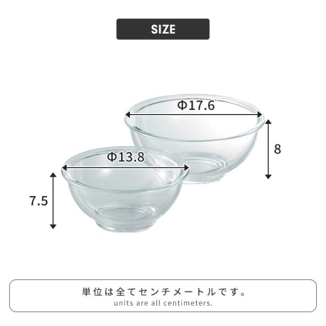 ● 耐熱ガラス製 クッキングボウル 2点セット(15cm&18cm)
