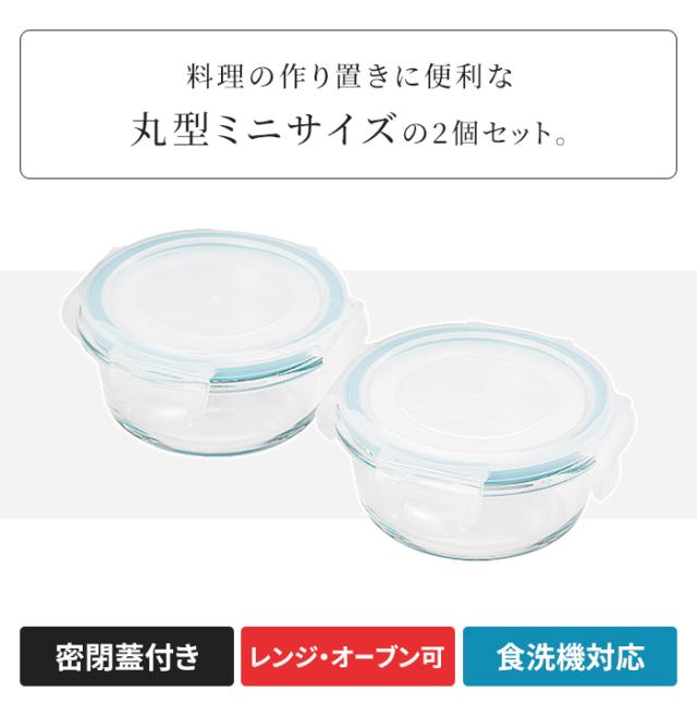 耐熱ガラス 保存容器 2個セット 蓋付き 丸型 ミニサイズ ガラス容器 レンジ対応 オーブン対応 食洗機OK キッチンツール 調理 新生活 一人暮らし