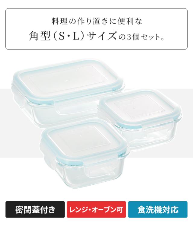 耐熱ガラス 保存容器 3個セット 蓋付き 角型 2種類 ガラス容器 レンジ対応 オーブン対応 食洗機OK キッチンツール 調理 新生活 一人暮らし