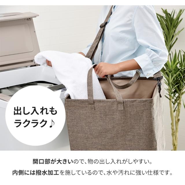 内側撥水加工だから、水や汚れに強く、濡れた洗濯物も入れられます。
