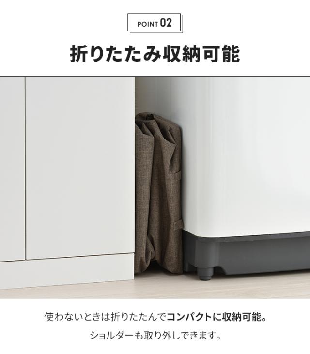 | 大容量と、ショルダー付で、マルチに使えるランドリーバッグ。 開口部が大きいので、物の出し入れがしやすい。 肩かけできるから、 腰を曲げずに、 立ったまま洗濯物が干せます。 巾着式で中身が隠せるので、 コインランドリーなどへの持ち運びも安心。 内側撥水加工だから、水や汚れに強く、濡れた洗濯物も入れられます。 使わないときは折りたたんでコンパクトに収納できます。 ショルダーも取り外し可能。 ランドリー以外にも、リビングやキッチン、 アウトドア等、様々なシーンで活躍。 |