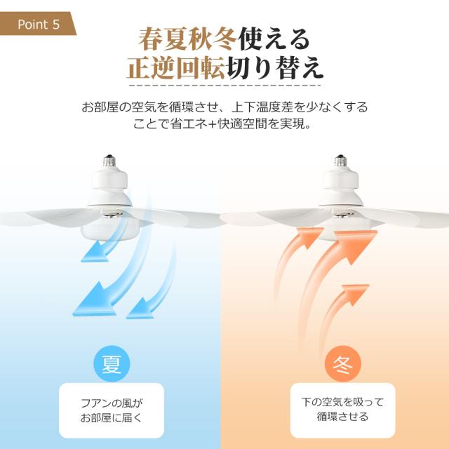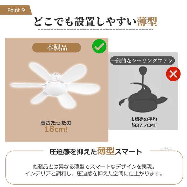 - 「ファン」と「LEDライト」を融合しており、天井に設置するだけで、涼しい風と明るい光を同時に享受できます。夏は強力な送風で暑さを和らげ、冬は空気循環を促して暖房効果を高めます。高い循環効率で温度差を解消可能です。