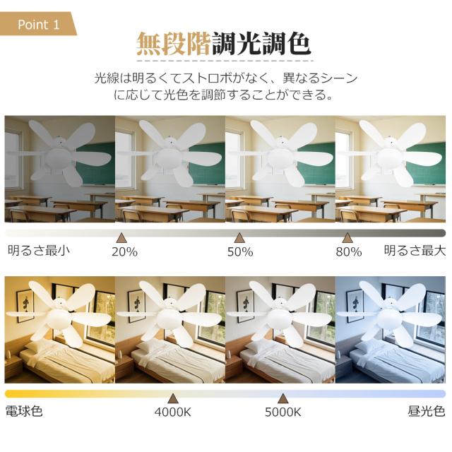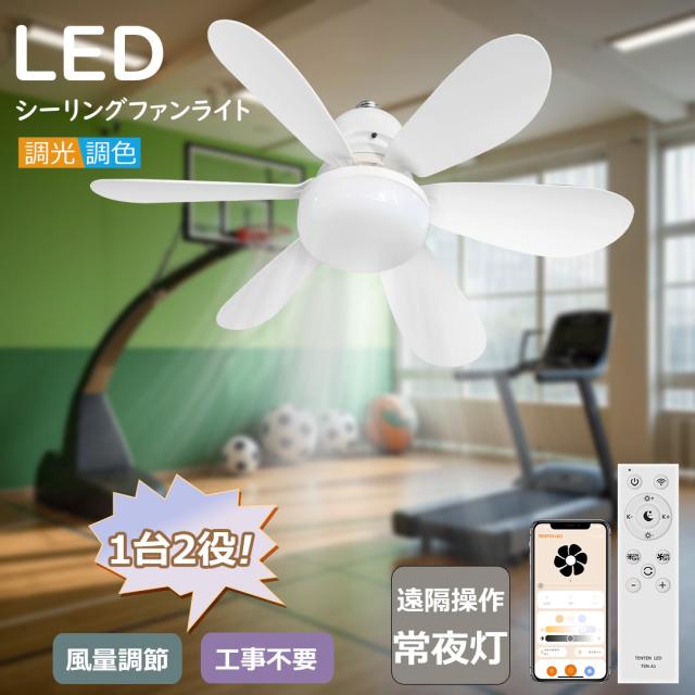 【1台2役】 シーリングファンライト LED シーリングファン E26口金 ファン付 シーリングライト 4畳 6畳 8畳 超高輝度 照明器具 天井照明 調光 調色 風量無段階調節 タイマー機能 静音設計 省エネ 小型 軽量 空気循環 寝室 部屋 トイレ 取付簡単 リモコン付 ファン付き照明