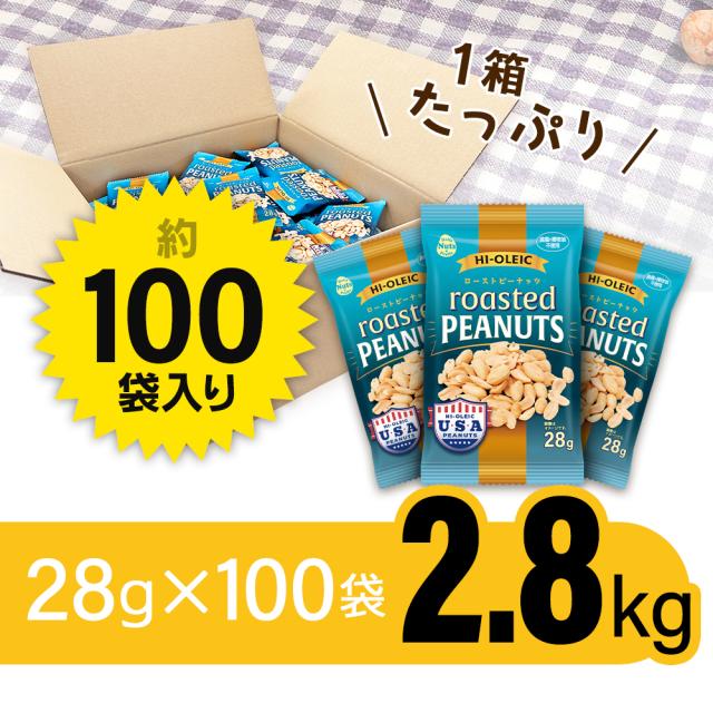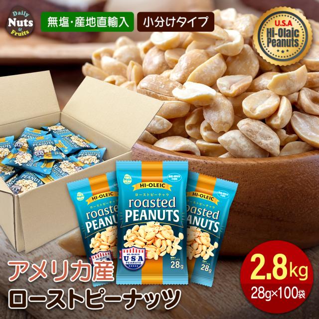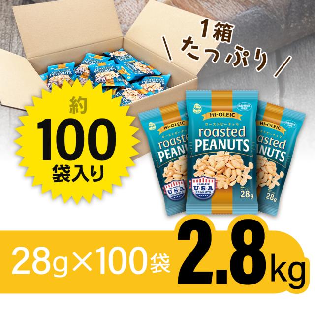 アメリカ産 ハイオレイックピーナッツ 約2.8kg(28g×100袋) ローストピーナッツ 落花生 素焼き ハイオレイン 高オレイン酸 無塩 添加物不使用 植物油不使用 おつまみ おやつ ラッカセイ 大容量 Peanut 小分け袋 食べきり