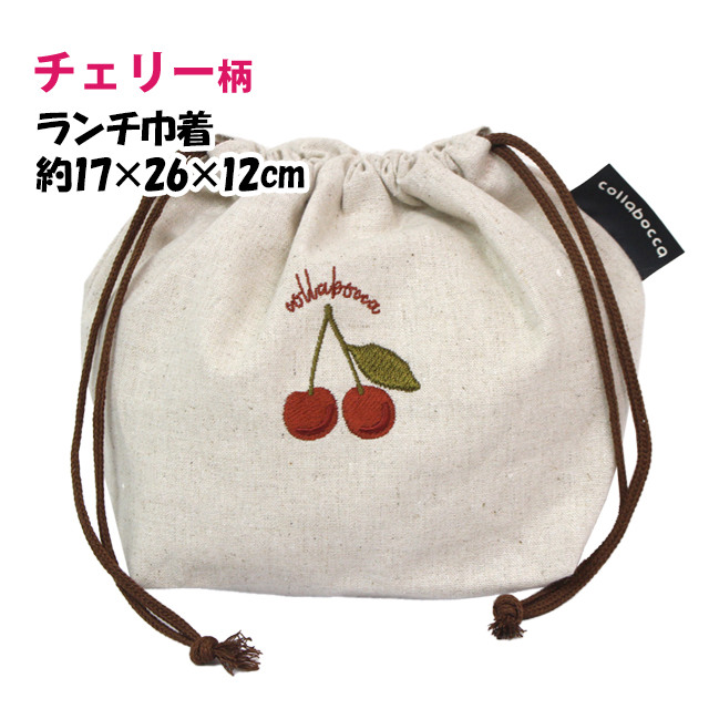 ランチ お弁当 袋 巾着 ポーチ 袋 キッズ 子供 女の子 チェリー 入園 入学準備 保育園 日本製 給食 巾着袋 お弁当箱入れ