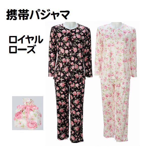 携帯パジャマ ロイヤルローズ柄 トラベルパジャマ ポーチ付 コンパクト パジャマ 旅行パジャマ 婦人 レディース ルームウエアー