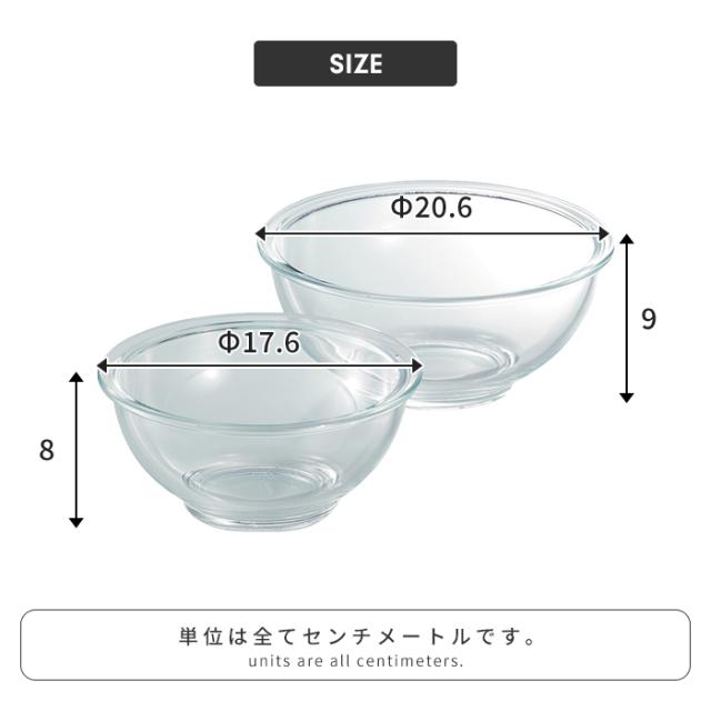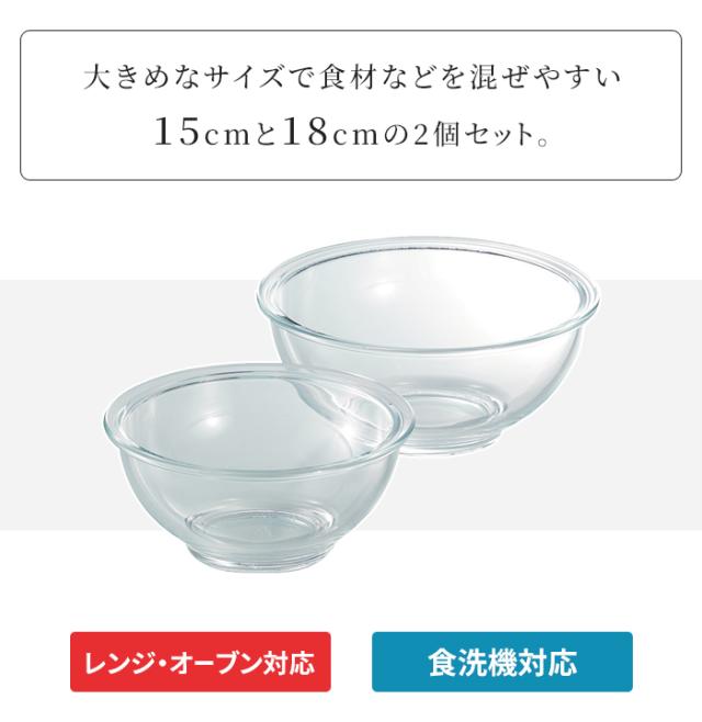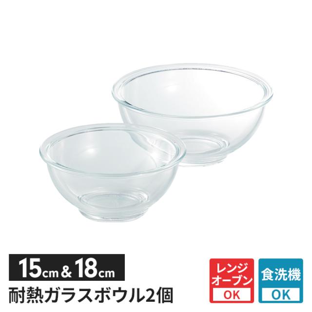 ● 耐熱ガラス製 クッキングボウル 2点セット(15cm&18cm)