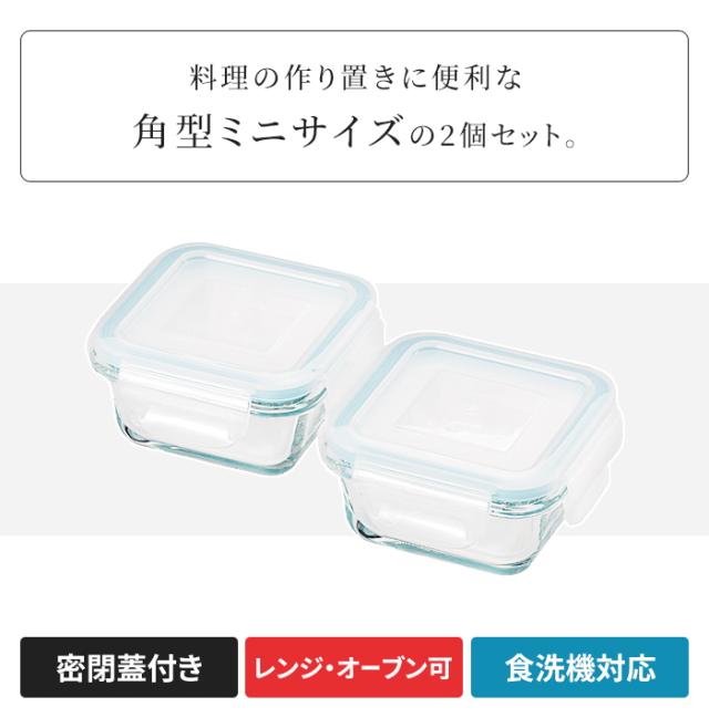 【値下げ】耐熱ガラス 保存容器 2個セット 蓋付き 角型 ミニサイズ ガラス容器 レンジ対応 オーブン対応 食洗機OK キッチンツール 調理 新生活 一人暮らし