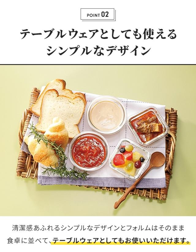 | ・電子レンジ対応 ・オーブン対応 ・食洗機OK ・蓋を4面ロックで密閉力アップ |