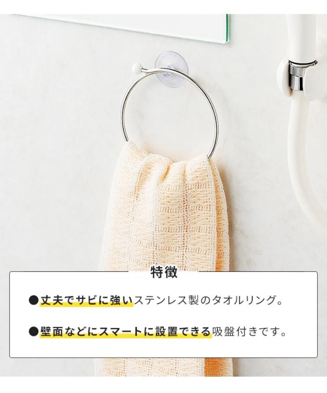 【値下げ】タオルハンガー タオルリング ステンレス製 吸盤付き 壁掛け 衛生的 便利グッズ シンプル お風呂収納 おしゃれ スタイリッシュ 新生活 一人暮らし