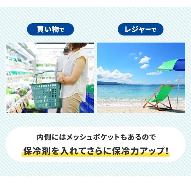 内面のメッシュポケットには保冷剤などを収納できるのでお買い物の帰りも安心。