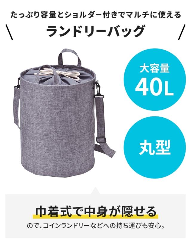 【値下げ】ランドリーバッグ 丸型 40L 大容量 巾着式 ショルダー式 中が見えない 洗濯かご ランドリーバスケット 洗濯物入れ 便利 新生活 一人暮らし