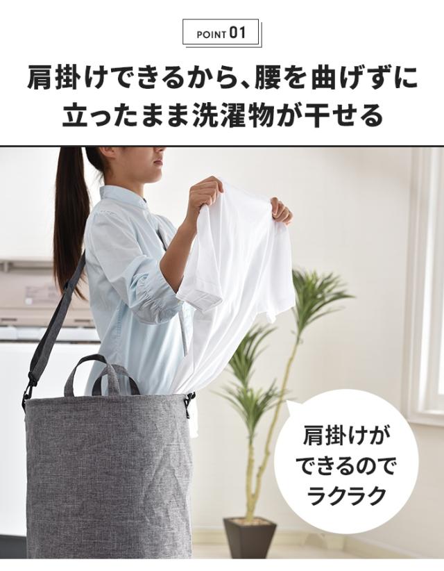 肩かけできるから、 腰を曲げずに、 立ったまま洗濯物が干せます。