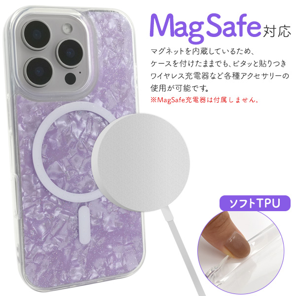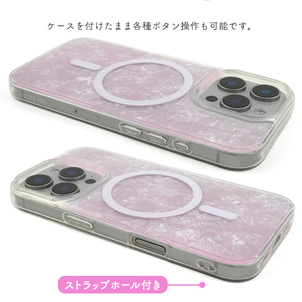 スマホケース iPhone16Pro MagSafe対応 アイフォン16プロ キラキラシェルケース 背面 保護 カバー クリアケース 光沢 シンプル マグセーフ対応 ワイヤレス充電対応 スマホ ケース スマホカバー アイフォン iPhone 16Pro アイフォン16Pro レディース