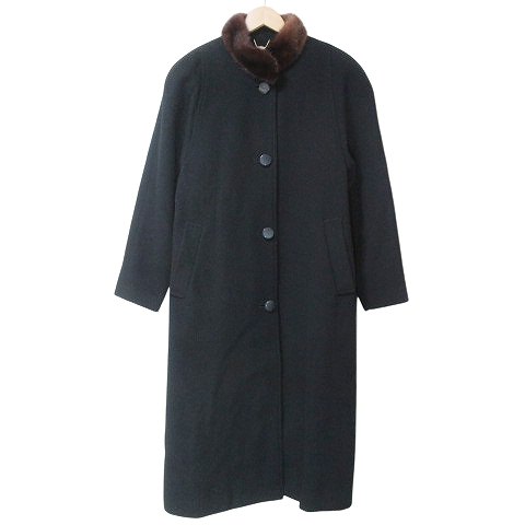 【中古】シティ エレガンス City Elegance カシミヤ混 ミンク襟 ロングコート ウール 9AR M相当 黒
