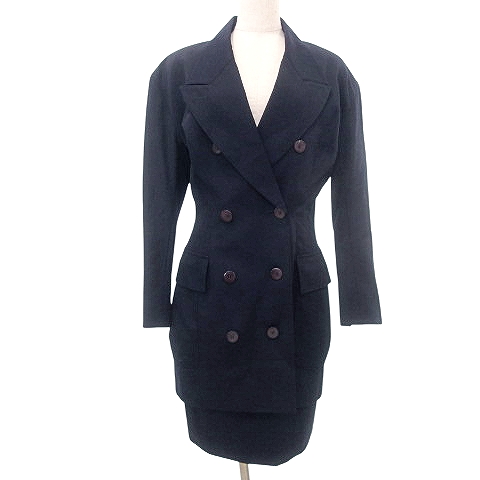 【中古】ノーベスパジオ スカートスーツ セットアップ 上下 ロングジャケット ダブル ひざ丈 M 濃紺 レディース