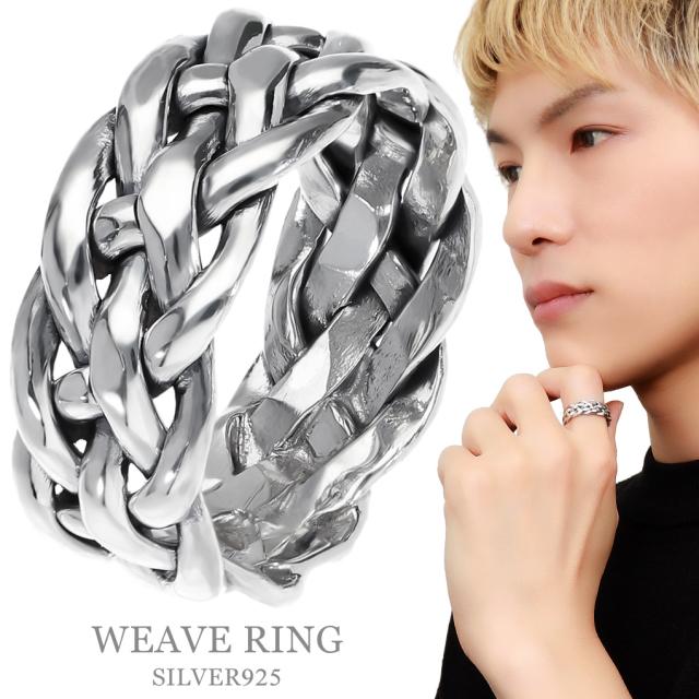 編み込み デザイン シルバー リング 指輪 13〜32号 メンズリング 模様 パターン シンプル ワイヤー ライン ツイスト スパイラル 燻し 幅広