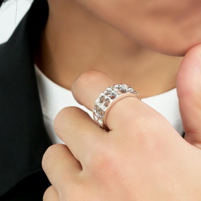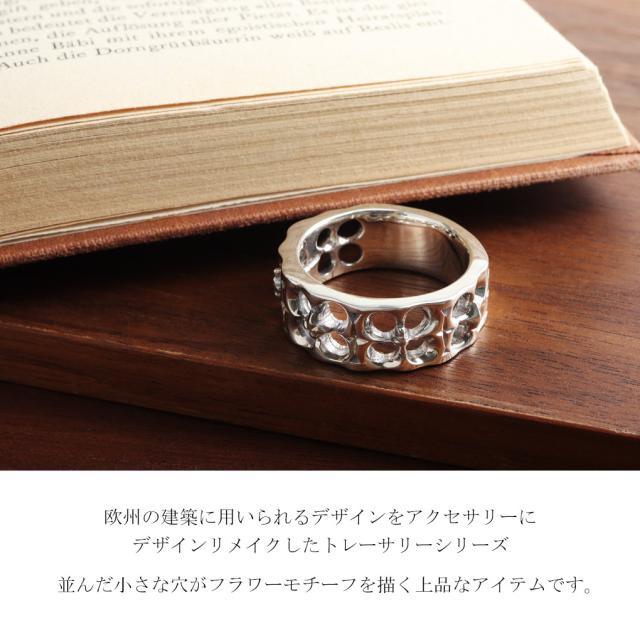 Que Crave トレーサリー フラワー 透かし 幅広 リング 指輪 5〜29号 シルバー 925 建築 装飾 上品 きれいめ 存在感 シルバーリング メンズ レディース