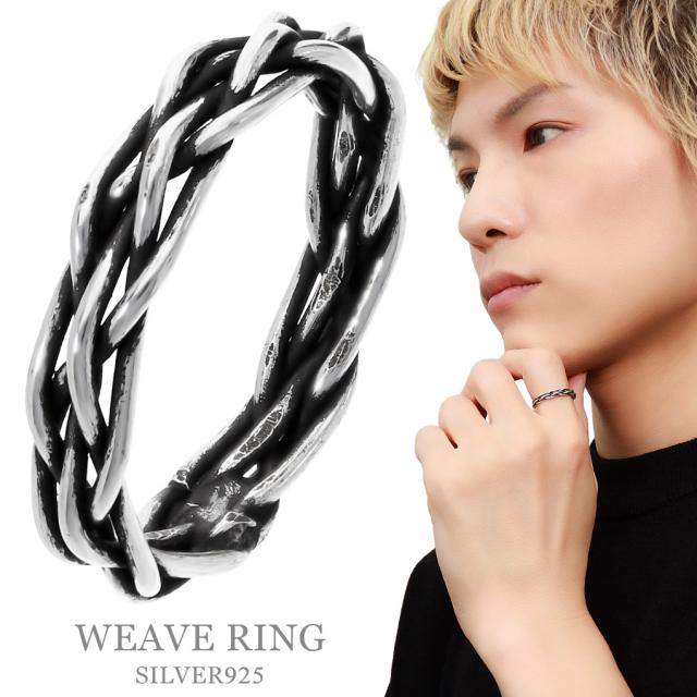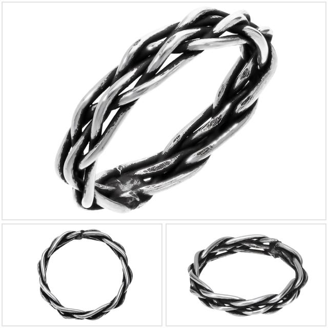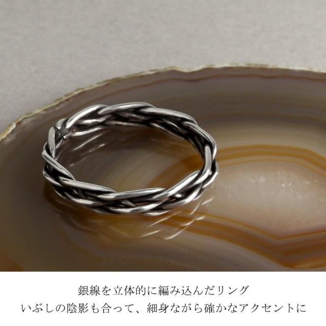 編み込み 立体 デザイン シルバー リング 指輪 13〜23号 メンズリング 模様 パターン シンプル ワイヤー ライン ツイスト スパイラル 燻し 細身 細め