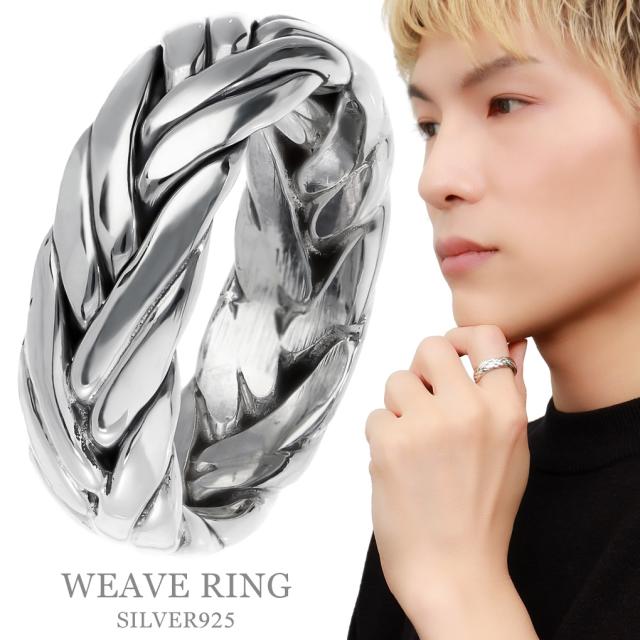 編み込み デザイン シルバー リング 指輪 13〜30号 メンズリング 模様 パターン シンプル ワイヤー ライン ツイスト スパイラル 燻し 幅広