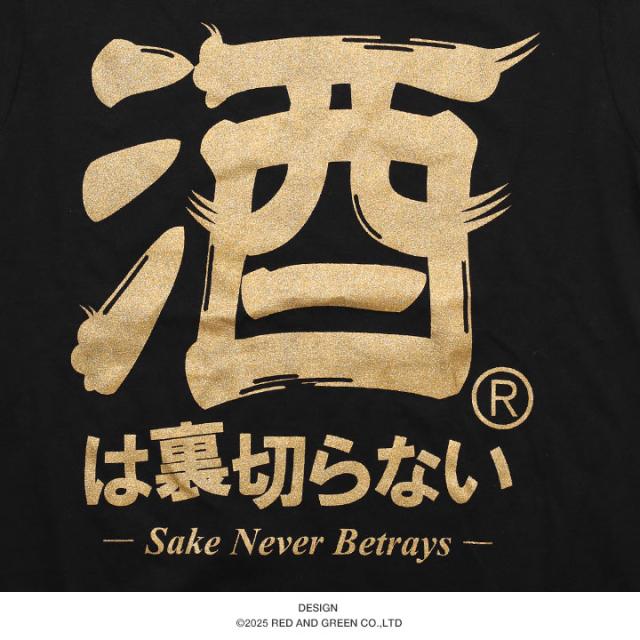 ブランドロゴの「酒は裏切らない®」を金プリントでドロップした、おもしろTシャツ。ネタTシャツとしてギフトやイベント時の自己アピールにもおすすめです。