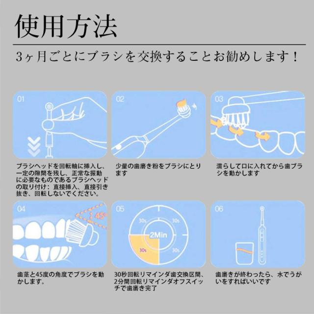 即納 電動歯ブラシ 替えブラシ 音波歯ブラシ 充電式 本体 超音波 歯ブラシ IPX7 防水設計 歯磨き 静音 強力 おしゃれ 携帯 口臭予防 歯石予防