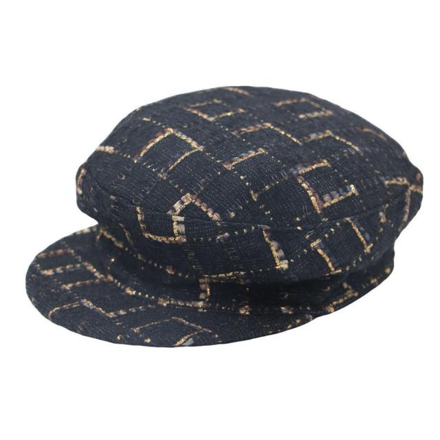 MUGUET ミュゲ ツイード キャスケット / 帽子 / ラメ糸 / ブラック ゴールド 黒 / 日本製 / ブランド 小物【レディース】【K4366】
