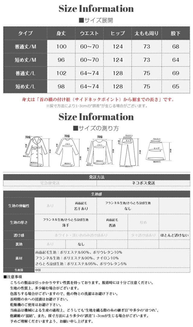 - フランネル生地ブラック丈短めのMを購入しました。色は限りなく黒に近いグレーで表はピーチ生地で裏はツルツル生地でした。ハイウエストではきたかったのでウエストのゴムがしっかりしていてよかったです。 注...
